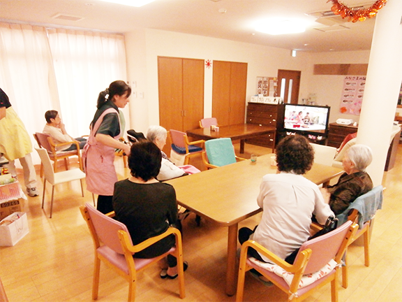 穏やかな共同生活をサポートするお仕事です。コミュニケーションが難しいお客さまと、分かりあえる瞬間が感動的で素敵なお仕事です。認知症ケアという専門性の高い仕事をチームで実践するので、うまくいったときにその感動を分かち合えたり、多くの成長を実感できるトコロも魅力です。