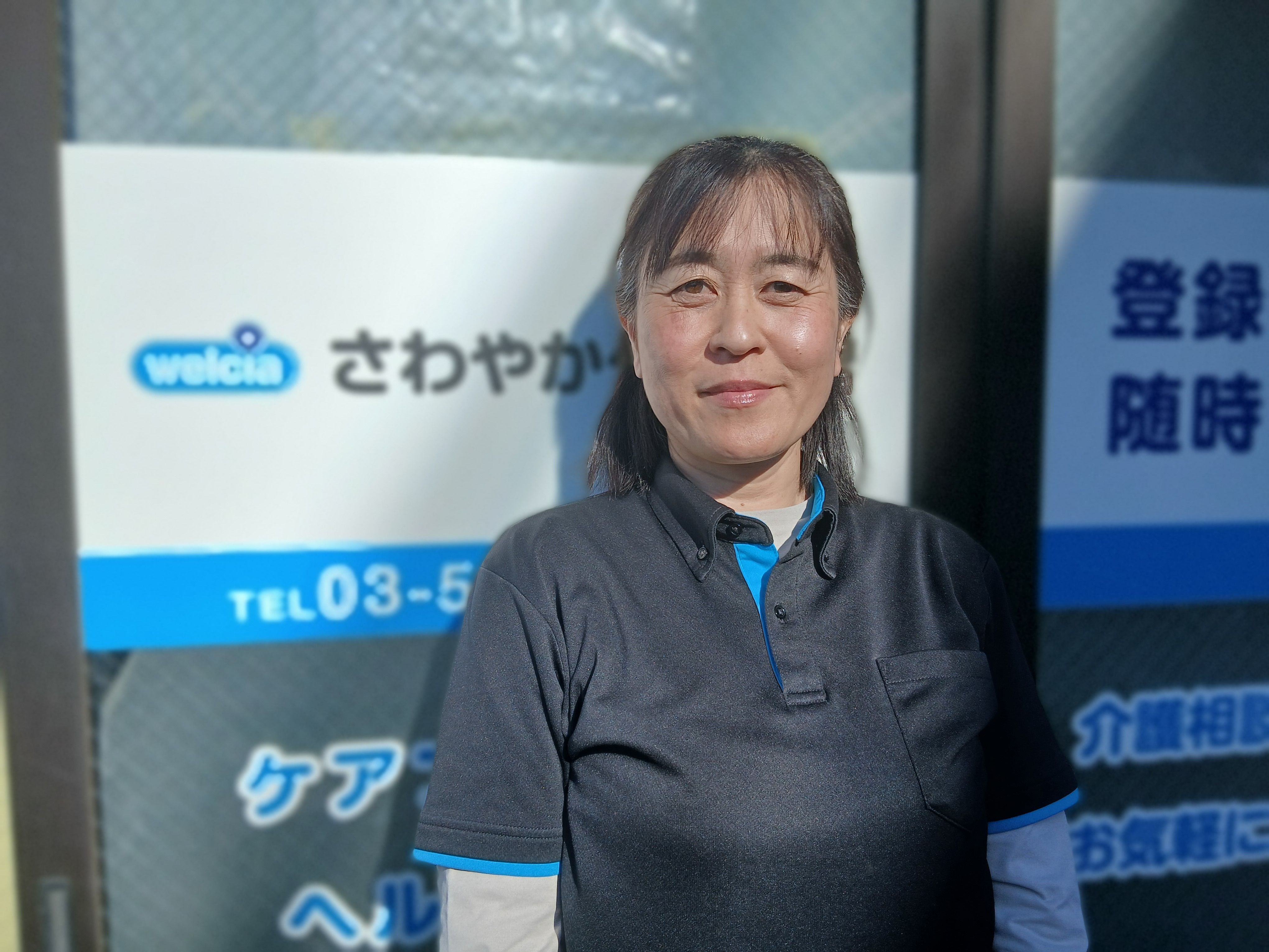 家庭と両立をしながら、歯科医院やリハビリデイサービスなどの勤務を経て、登録ヘルパーとして入社。社員化を経て現在はサービス提供責任者としてヘルパーをまとめる存在に。