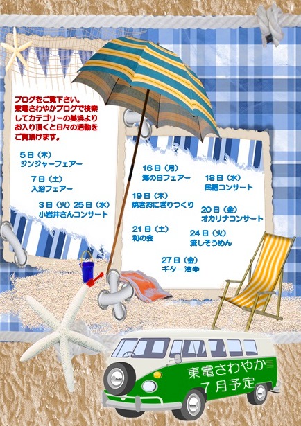 7月の予定が確定致しましたので