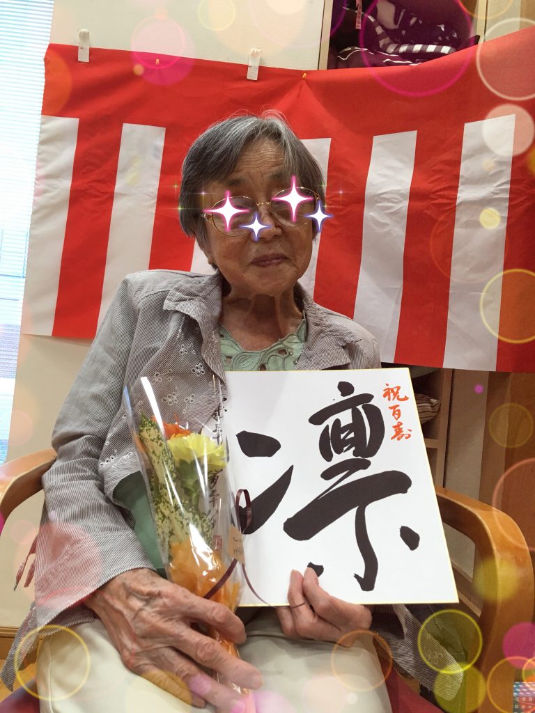 そして今月はかもめで3人目!! 100歳のお誕生日をむかえられた方をお祝いしました。