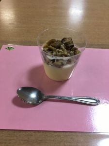 • 今月の1回目の手作りおやつは「マロンプリン」です。