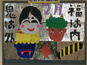 中山では1日はやい豆まきをしました。