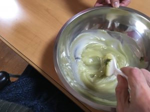まずは、白あんと抹茶パウダーをよーく混ぜていただきます。
