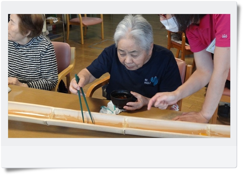 美浜 2019.07.15 流しそうめん<デイ美浜> こんにちは。 東電さわやかデイサービス美浜です。 本日のおやつは、初夏の恒例イベント 流しそうめんでお楽しみ頂きました! 美味しそうですね~♥ ※お客様ご本人・ご家族様より写真掲載の 同意を得ています。 ~スタッフ募集中~ 私たちと一緒にお客さまを笑顔にするお手伝いをしてみませんか? TEL 03-5621-7337 (本社:採用担当) ホームページはここから 東電さわやかデイサービス美浜では、随時見学を受け付けています。 ご興味がある方は、是非043-204-2166までご連絡ください。 皆さまからのご連絡お待ちしております!