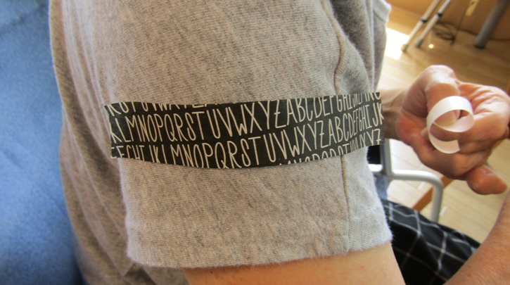 洋服や帽子にも好きな長さで貼ることが