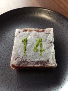 おやつには14周年を意識して、抹茶を振りかけたきんつばを提供しました。