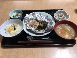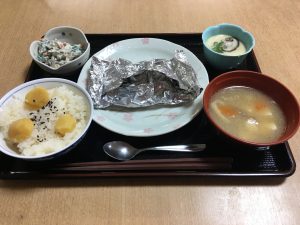 鮭のホイル焼きに茶碗蒸し栗ご飯に