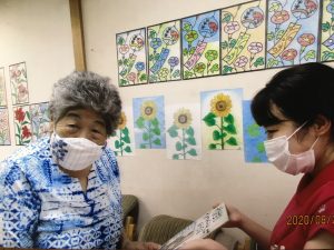 普段の姿やVサインなどのポーズの写真を使って職員手作りの色紙を送らせていただきました。