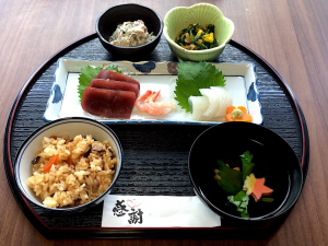 お刺身(マグロ、鯛、甘エビ) のどちらかを選択