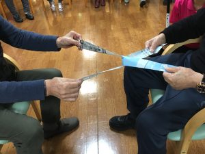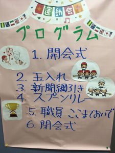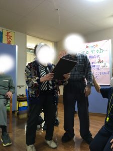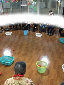 スプ-ンの上に小物をのせお隣の方に渡していくゲ-ムです。