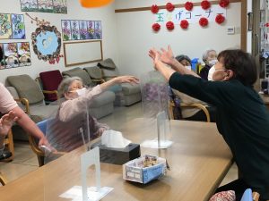 あまり騒げない日々が続いていますが、今日はしっかりマスクをしながら賑やかに風船バレー大会やっていきましょう!