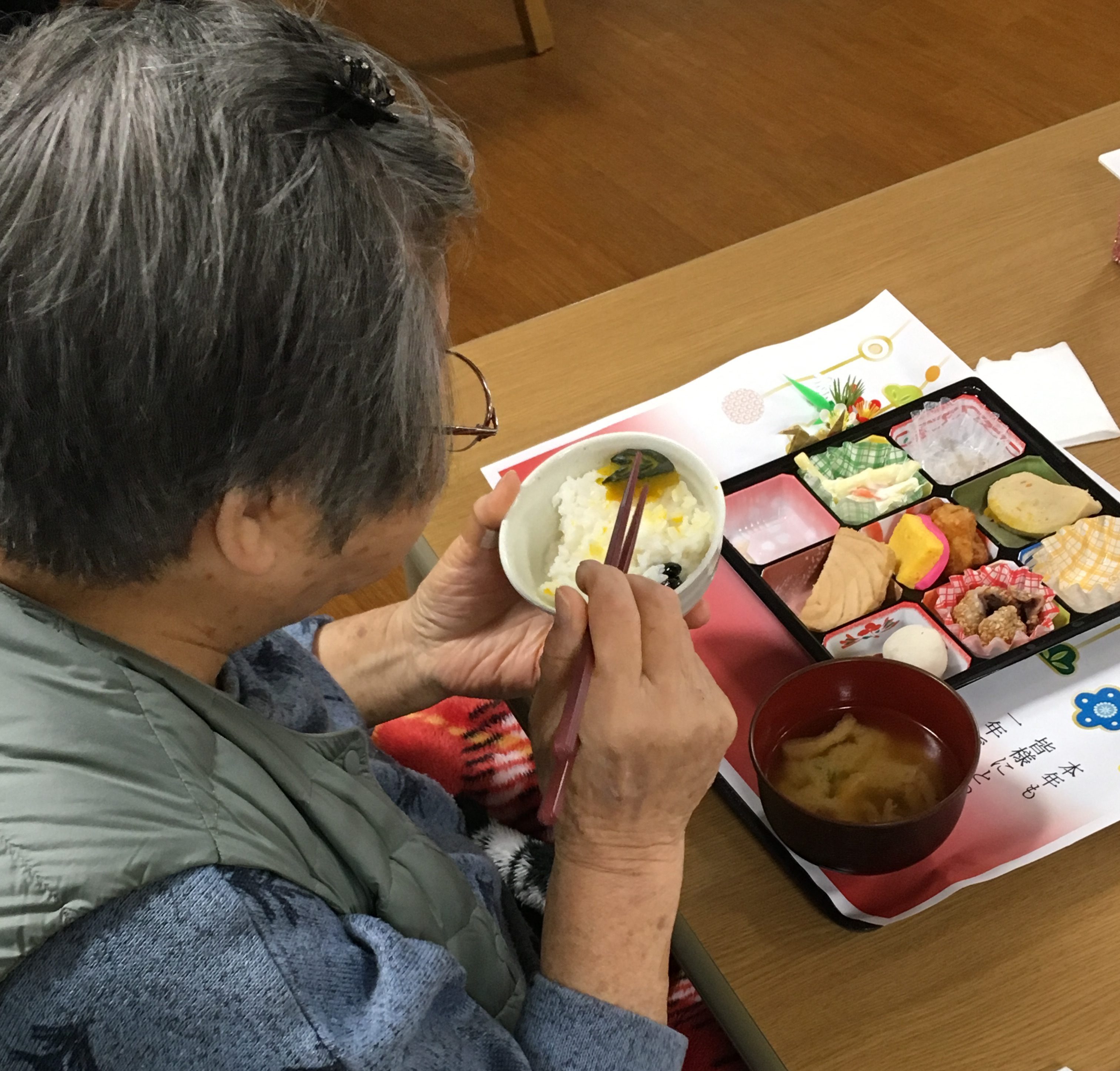 「お正月」の歌を、新年会バージョンに変えて、音楽体操も行いました。