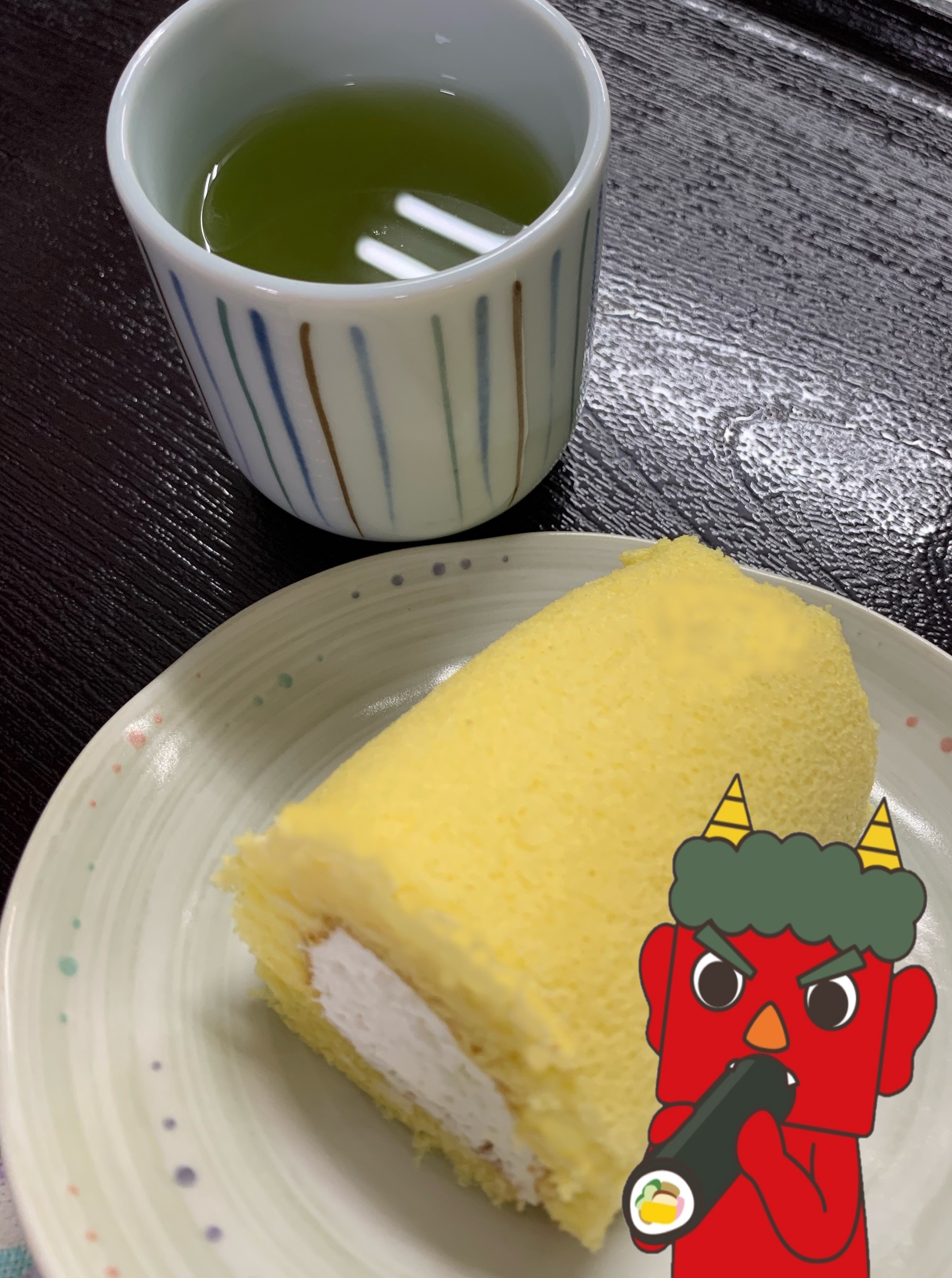 皆さん、一生懸命踊った後は、おやつタイムです! 節分イベントのおやつは 恵方ロールでした