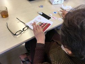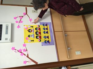 3月のイベントの飾りをスタッフと作成していただいています。 お花も丁寧に貼ってくださっています。 完成をお楽しみ🌸