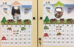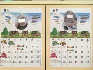 5月のカレンダーは「鯉のぼり」「母の日」「兜」「柏餅」そしてご自分の顔を切り貼りして頂きました!皆さん、照れながらも楽しんで写真を貼られていたのが印象的でした。