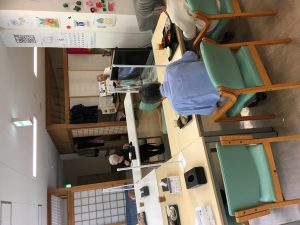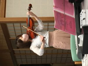 音楽療法の先生がいらしてバイオリンを弾いて下さいました。皆さんウットリ唄に合わせて手を使い身体を動かしています。