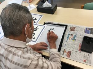 10月に入りました!今月は皆様にお習字を行なって頂いております。