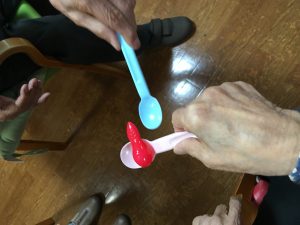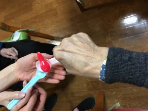 落とさないように集中して次の方に渡していました。真剣のあまり手がふるえていました。