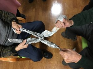 破れないように新聞を握り工夫されていました。皆さま勝負師の顔をされていました。