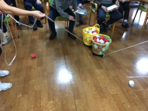 カゴに入れようと身を乗り出して玉を入れていました。気合たっぷりでした~♪