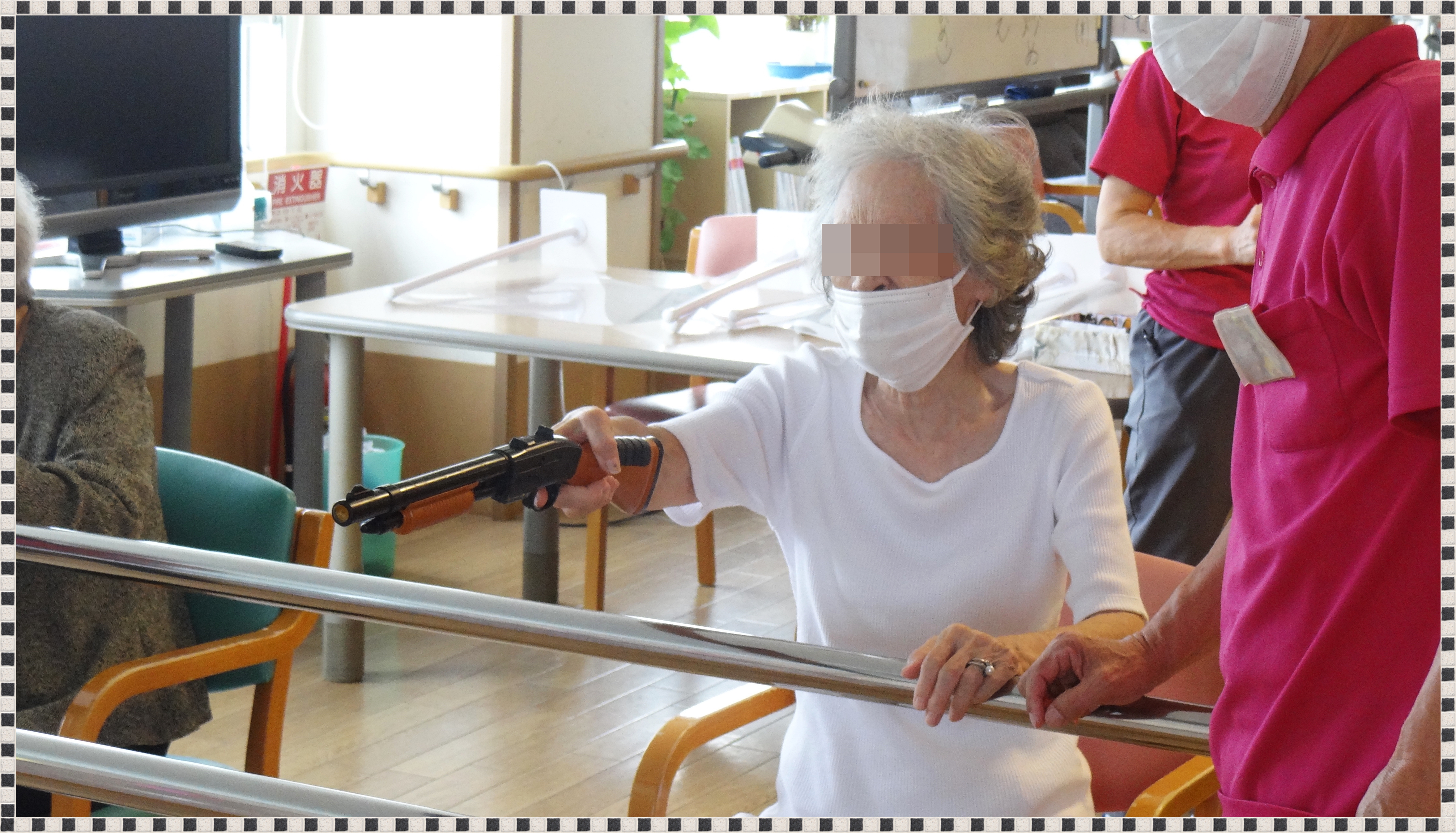 マスクを外して頂いています。