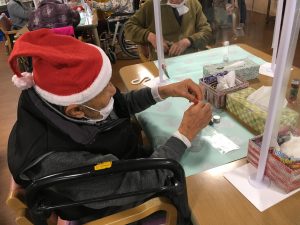 そしてクリスマスといえばケーキですね。スタッフ手作りのクリスマスケーキを召し上がっていただきました。えー、手作りなの?と驚かれるご様子も。ボリュームのあるケーキでしたがみなさん美味しかったと喜んでくださいました。