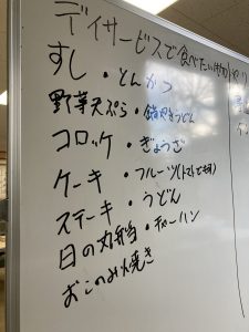 先月お客さまに、デイサービスで食べたい物をお伺いしてみた結果が下の画像になります。