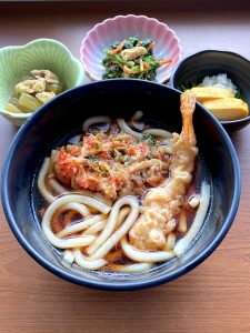 海老天&野菜のかき揚げうどんを提供しました。
