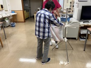 上のお写真は家事活動をされているところです。皆さん主婦をされてきたベテランの方です。昔を思い出し手際良く干して頂いています😊