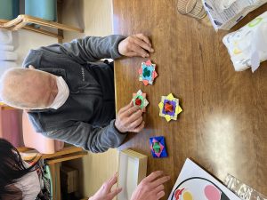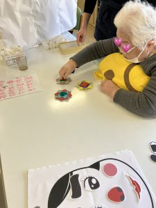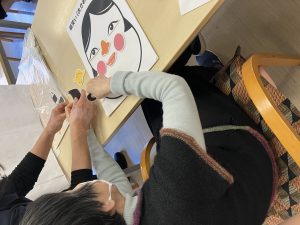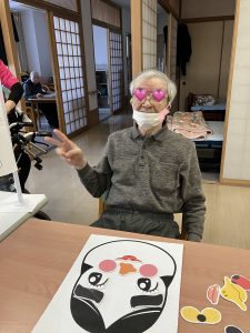 お正月、福笑いと折紙で折ったコマで楽しんで頂きました。皆さん笑顔で楽しまれていました😊