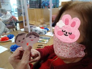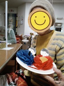 今回は花紙を使っておひなさまを作製したり、おひなさまの福笑いをしたりして楽しみました。
