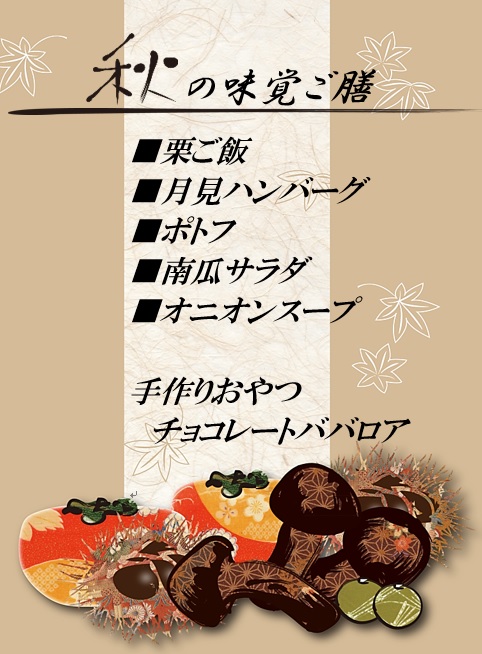 美浜 2023.10.23 味覚の秋です。<デイ美浜> こんにちは。 東電さわやかデイサービス美浜です。 10月23日(月)に食事イベント 「秋の味覚ご膳」をご賞味頂きます。 食欲の秋をデイ美浜で、お楽しみください♪ ~スタッフ募集中~ 私たちと一緒にお客さまを笑顔にするお手伝いをして みませんか? TEL 03-5621-7337 (本社:採用担当) ホームページはここから 当デイサービスでは、随時見学を受け付けています。 ご興味がある方は、是非043-204-2166まで ご連絡ください。 皆さまからのご連絡お待ちしております!