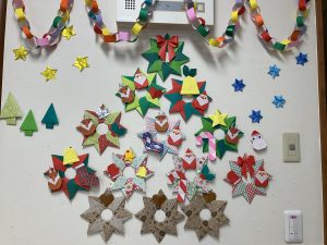 今年も残り少なくなって来ました。12月に入りクリスマスの装飾作成のお手伝いをして頂きました🎄皆さん真剣に行なっている1コマを載せています🤶