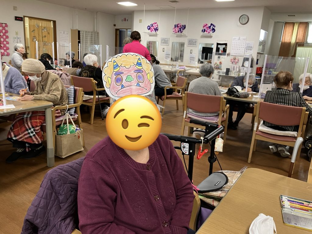 皆さま 黙々と鬼のお面の色塗りに集中していらっしゃいました!