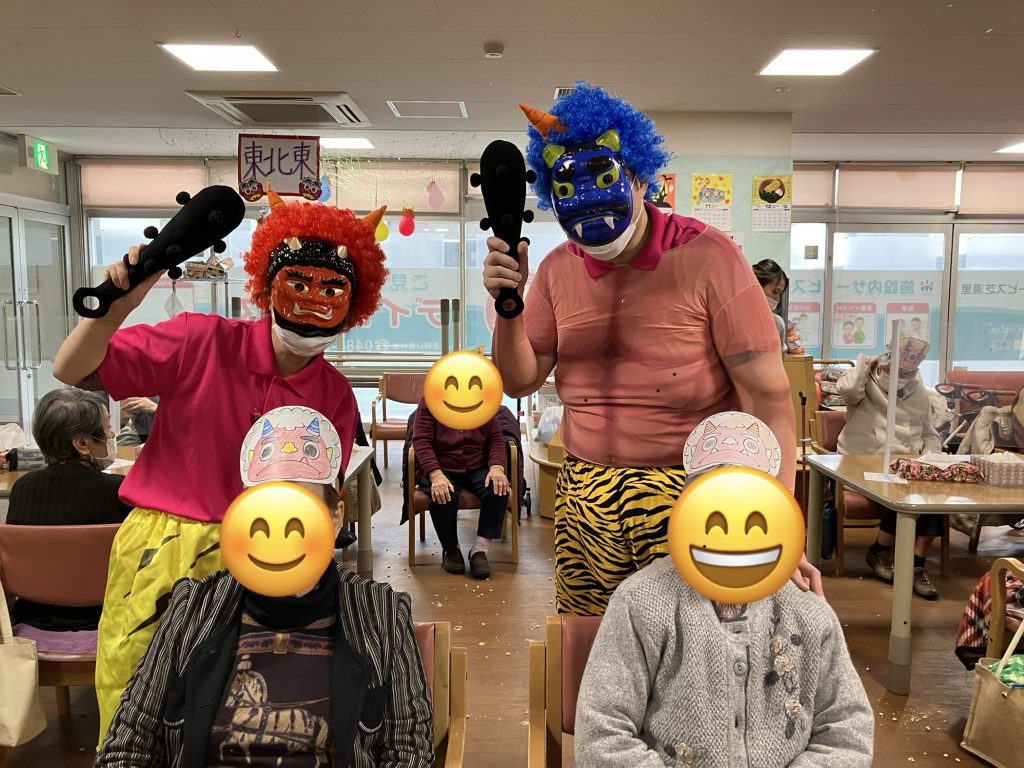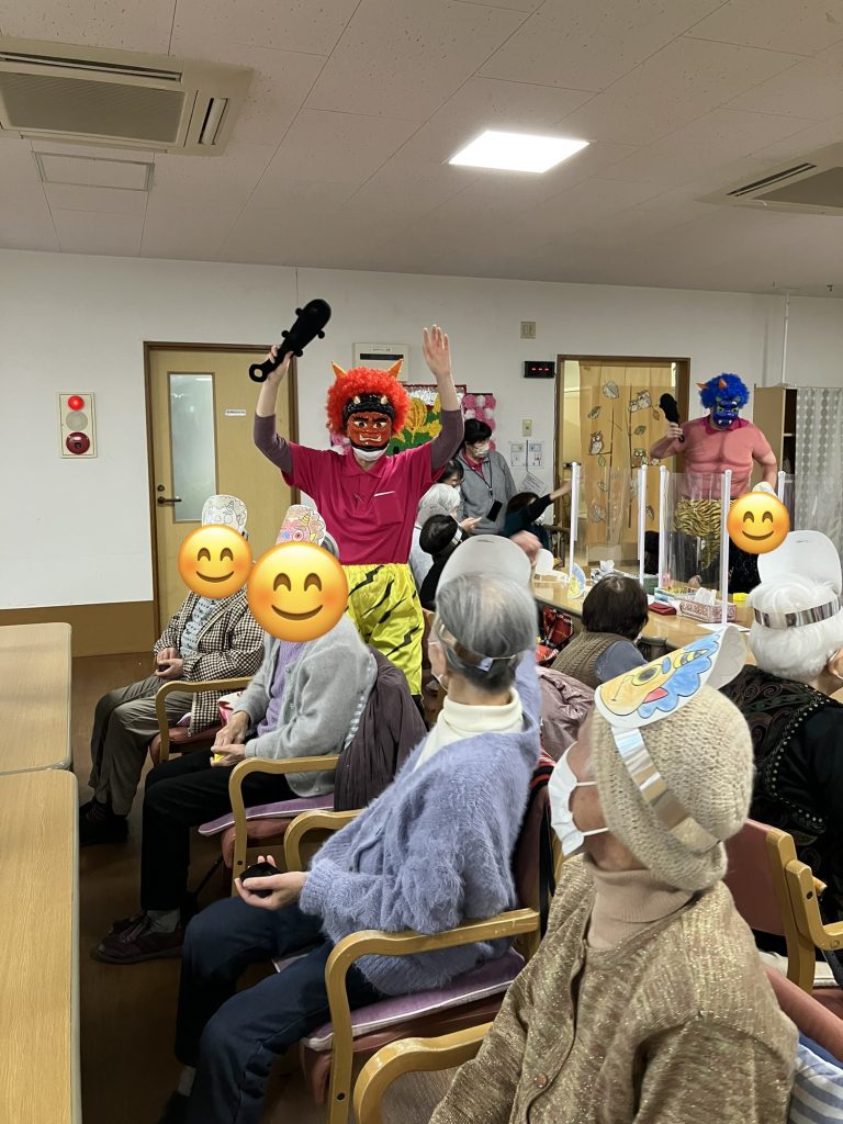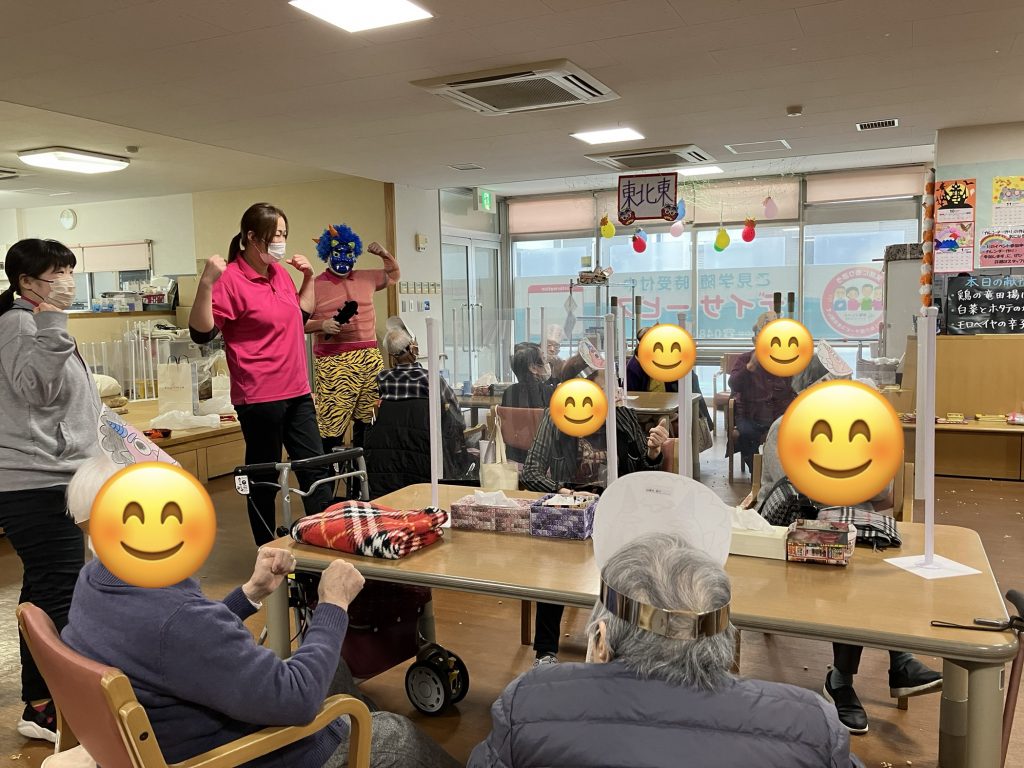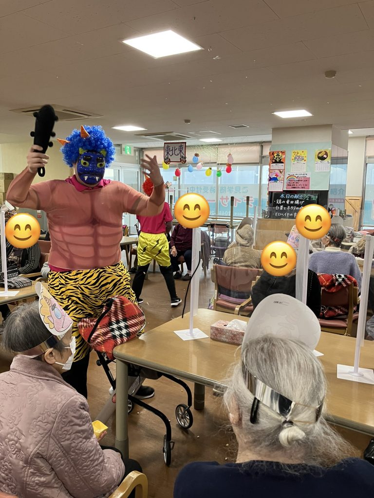 なかなか豆を投げようとしない優しい皆さんを煽る鬼