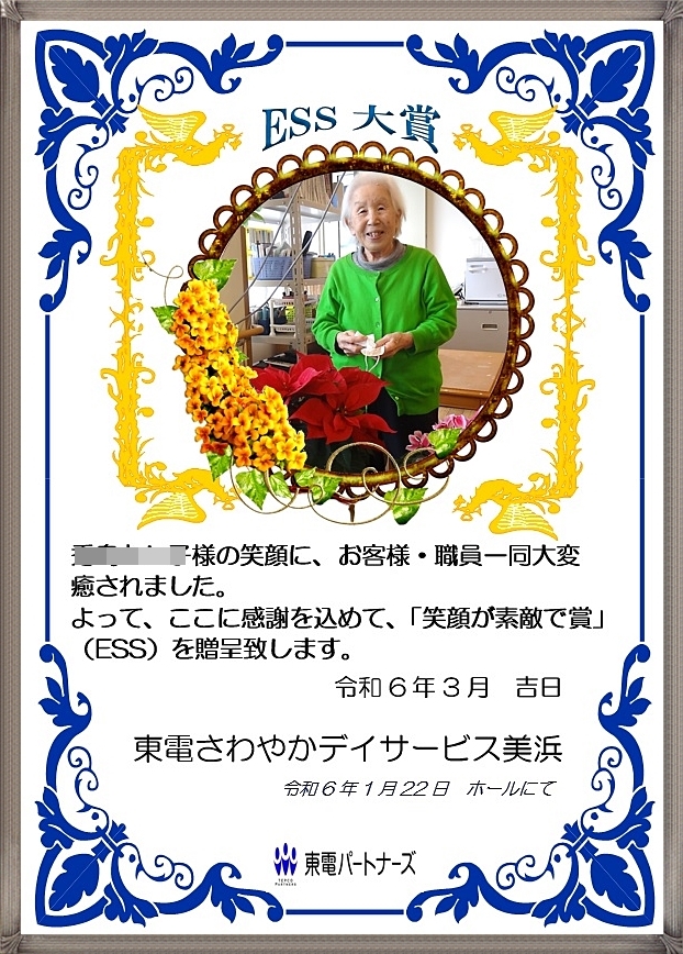ESS大賞(笑顔が素敵で賞)の表彰式を