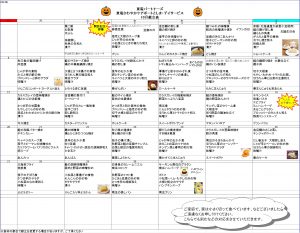 10月の献立が出来ました!