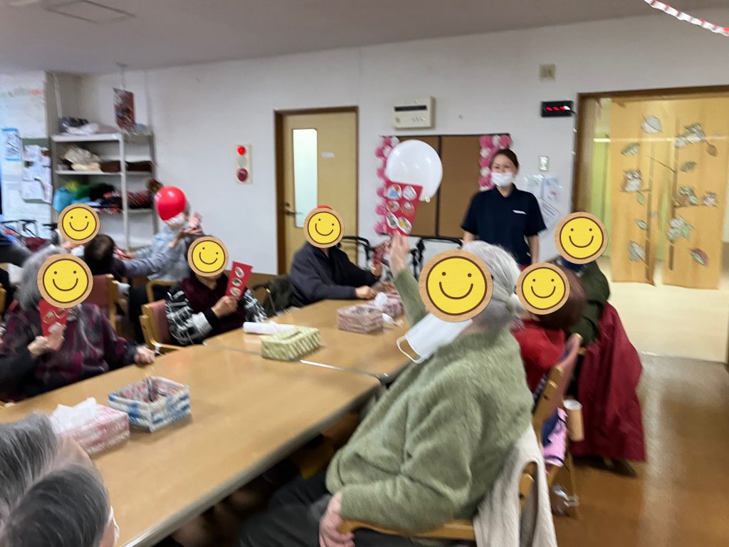 完成した羽子板を使って風船送りゲームも楽しみました。皆さん真剣ですが、風船が進んで戻っての繰り返しでなかなかゴール出来ず!笑いも起こってとても盛り上がりました。