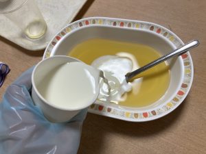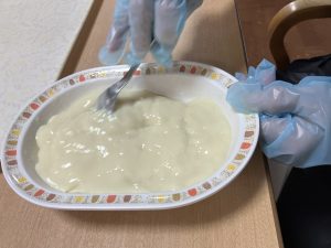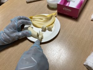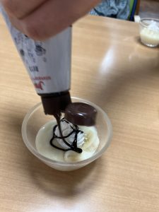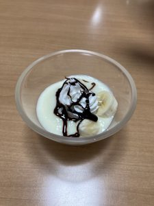 今月13日の手作りおやつはバナナフルーチェを作りましたので、そのご様子を少しご紹介いたします。