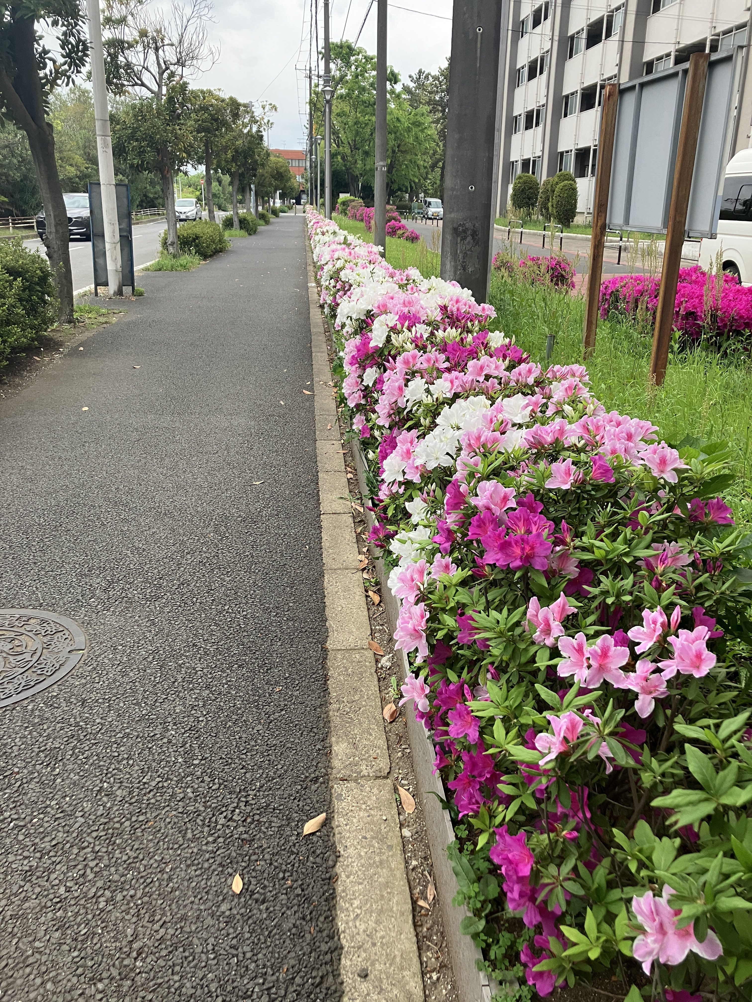 1列に満開に咲いたツツジ達がとても綺麗でした。