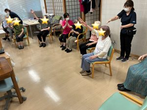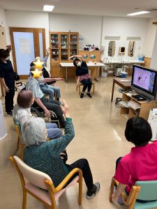 今回は体操週間の様子を掲載しています。 DVDの体操教室を観ながら春夏秋冬の音楽に合わせて身体を動かしています♪皆様、一生懸命でした。