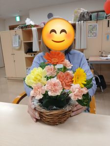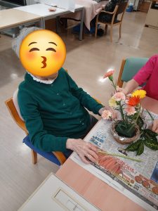 今回はフラワーアレンジメントのお仲間が増え、お花をされているところと完成されているひとこまを掲載しています。お家に飾りご家族も喜ばれているとの事でした。