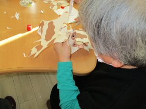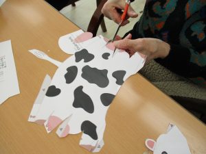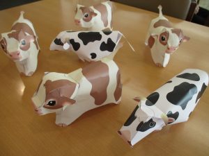 ペーパークラフトの牛をお客さまと作りました。