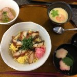 土用の丑の日もあり今月のスペシャルランチは「ウナギのちらし寿司」「冬瓜と鶏肉の煮物」