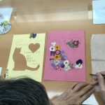 お客さまに犬か猫か、お好みの方を選んでいただき下書きの上に押し花を配置します。