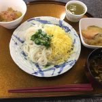昼食は「そうめん」を提供させていただきました。めんつゆには~薬味のネギも加えて~