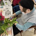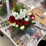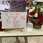 フラワーアレンジメントではクリスマスを意識した作品を作りました。