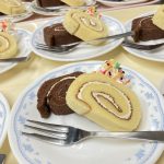 2色のロールケーキにホイップ、カラースプレーで彩を添えて提供させていただきました。