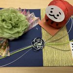 水引と立体ダルマを飾りシックで可愛らしい作品に仕上がりました。