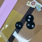 長方形のクリアケースに入れて飾り、シールでポイント付け。
